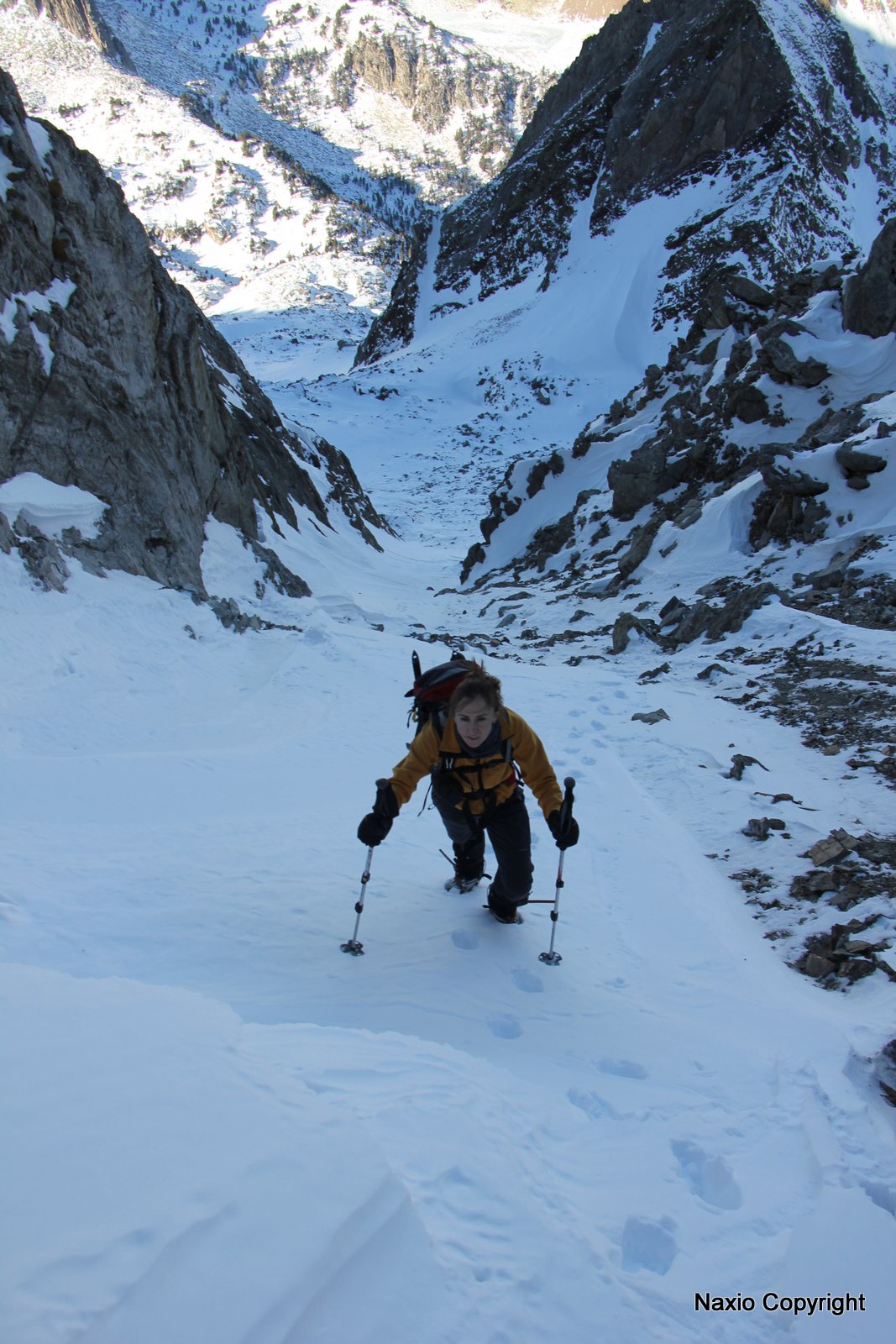 Para comenzar nuestra andadura por el valle del Esera, nos vamos a la Tuca D´Ixeia, en el valle de Estos. Ascendemos por el helado camino a los ibones de Perramó, bajo las agujas del mismo nombre y de allí se coge un sombrío y oculto corredor de orientación norte, que lleva a la brecha d´Ixeia. De ahí el ascenso continua por la parte trasera, por una sucia trepada por roca, nieve e inclinadas pendientes de hierba en las que hay que tener cuidado, hasta la cima de la Tuca D´Ixeia.